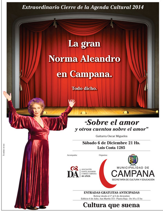 Afiche promocional de la presentación estelar, en Campana, de Norma Aleandro.