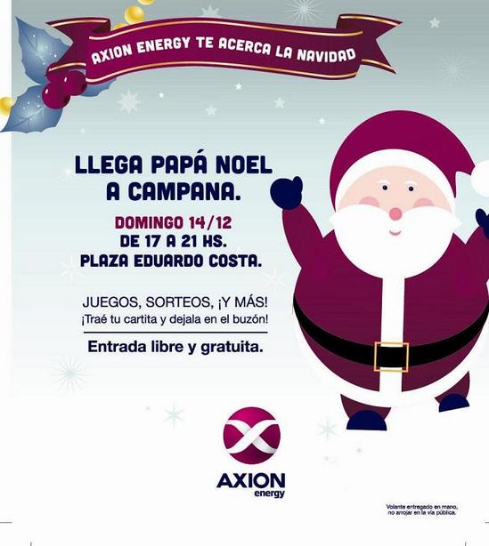 Con el objetivo de recibir la Navidad, AXION energy invita a toda la comunidad de Campana a participar de un evento para toda la familia que se llevará a cabo el domingo 14 de diciembre, de 17 a 21, en la Plaza Eduardo Costa, con el apoyo de la Municipalidad de Campana.
