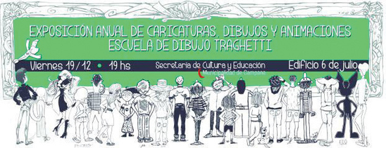 Auspiciada por la Secretaría de Cultura y Educación, este viernes 19 de diciembre a las 20 hs, se presentará en el salón Ronald Nash del edificio 6 de julio, la muestra anual de alumnos de la Escuela de Dibujo Traghetti.