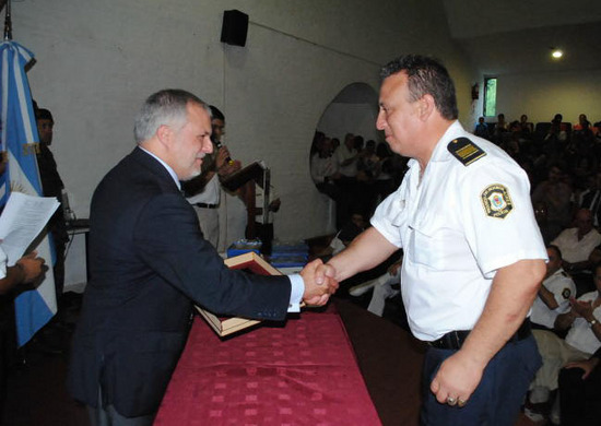 El titular de la Comisaría Campana, recibe de Pablo Such, su merecido reconocimiento.