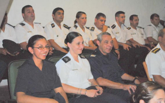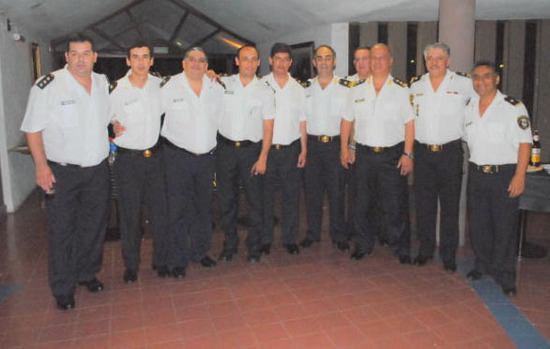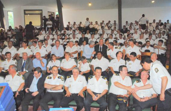 Grupo de Comisarios y Oficiales, entre los que se encuentran el Comisario Inspector Jorge De Negri, Subcomisario Marcelo Carpignano y el Comisario Mayor Alvarez.