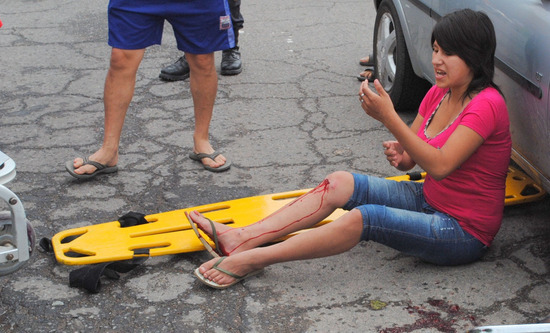 La motociclista quedó dolorida y con un corte en su rodilla, debiendo ser trasladada al Hospital San José junto a sus pequeños.