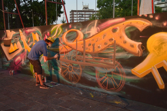 Al igual que el grafiti que realizó en vivo el artista urbano Yamil Bullaude, por más de siete horas. Según se informó, dicha obra será exhibida en los próximos días en la Casa de los Talleres Municipales.