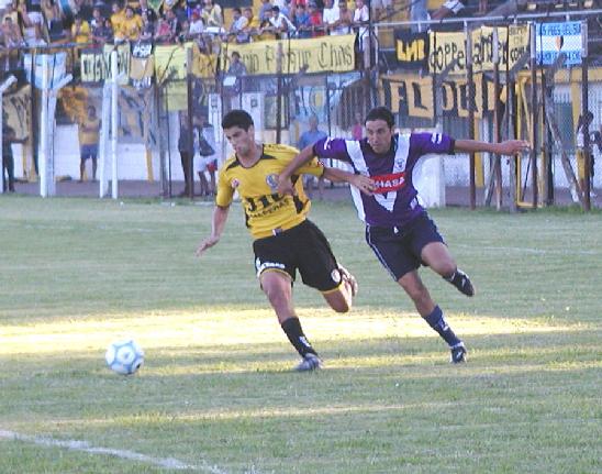 Por ello no se generaban jugadas claras, sino que todos los intentos eran trabados y cuando se arrimaba peligro a las áreas, estos eran producto de equivocaciones y yerros defensivos, más que jugadas limpias y prueba de ello es que a los 6 minutos y luego de varios rebotes, en dos oportunidades la pelota fue devuelta por el travesaño del local, tras sendos remates de Guadagnone y Gómez. Dálmine era definitivamente más que el local, pero a los 23´ y en una jugada aislada, protagonizada por el ¨Turco¨ Adur por el sector derecho, ingresando al área eludió a Doello y cedió al medio para que el goleador Ibáñez abriera la cuenta inmerecidamente.