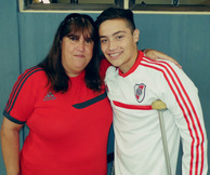 El joven junto a su entrenadora de River, Marcela Belviso.