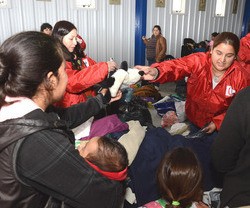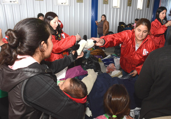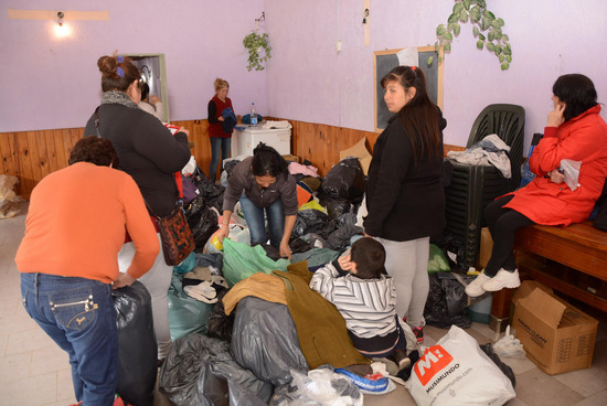 En San Felipe, a parte de las mencionadas tramitaciones, se realizó la entrega de vestimenta y de agua mineral. Allí los vecinos realizaron una selección de prendas según los talles necesarios.