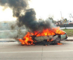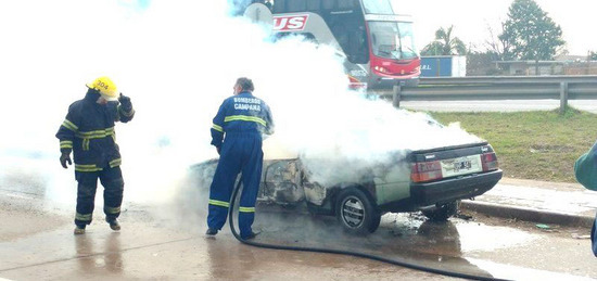 Ayer por la mañana, un Renault Fuego se incendióen la Colectora Sur, frente a la pasarela del barrio Ariel del Plata, al parecer por un problema eléctrico.