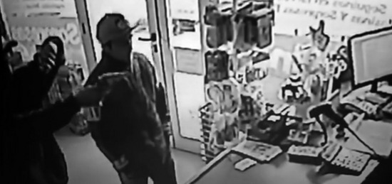 Ocurrió en Castelli al 400, cuando dos delincuentes entraron y amenazaron a la encargada con un revólver. Quedó registrado en las cámaras de monitoreo del local, al igual que había pasado días atrás en una despensa de la calle Belgrano. El video fue difundido por Facebook.