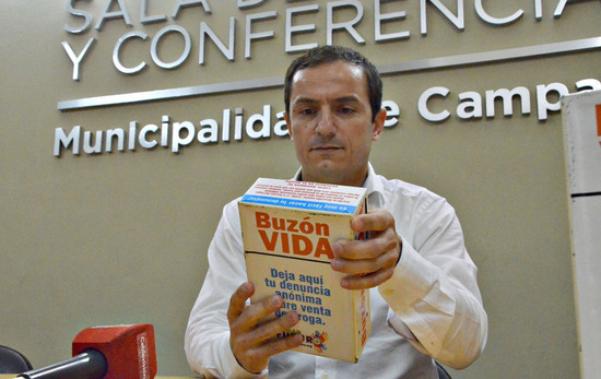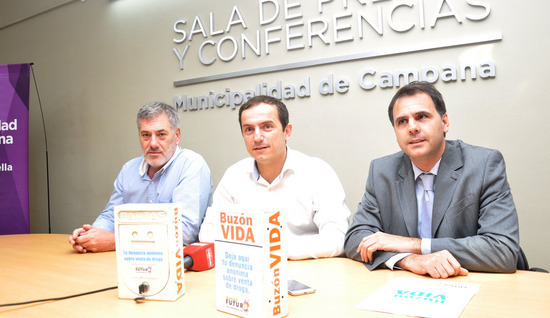 EL INTENDENTE, AYER, AL PRESENTAR "BUZÓN VIDA" PARA DENUNCIAR ANÓNIMANTE LA VENTA DE DROGA.