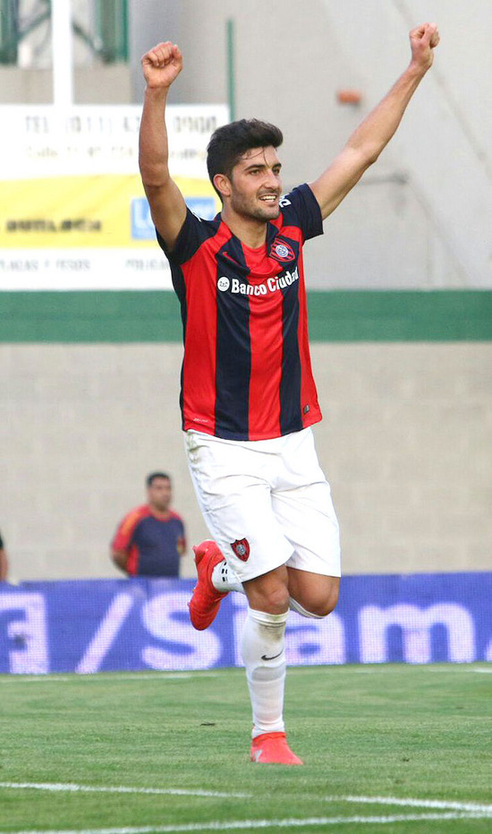 Con un cabezazo, el delantero campanense abrió el camino de la victoria 2-0 del Ciclón sobre Defensa y Justicia.