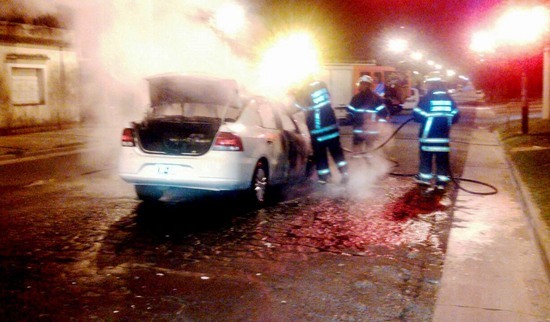 Alrededor de las 5 de la mañana del sábado, en el cruce de las Bv. Dellepiane y Ameghino, se prendió fuego un automóvil Volkswagen Voyage.