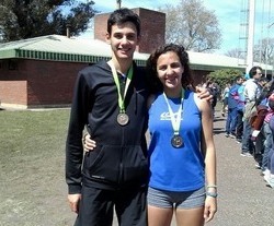 Juan martín Marquine (oro) y Alison Olinik (plata) celebraron junto sus medallas en atletismo.