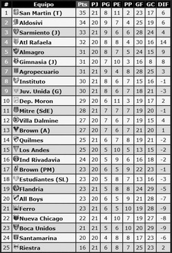 Esta 22ª fecha continuará hoy con tres duelos clave en la lucha por la permanencia: Los Andes vs Independiente Rivadavia (12.00), Villa Dálmine vs All Boys (15.30) y Estudiantes de San Luis vs Brown de Adrogué (16.00). Y luego, a partir de las 17.00, habrá un partido decisivo en la lucha por el ascenso directo, cuando Gimnasia de Jujuy (6º con 31) reciba a Aldosivi de Mar del Plata (2º con 34).