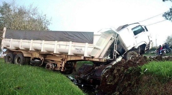 En su abrupta "frenada" llenó de tierra la Colectora Sur, pero no afectó el tránsito de ningún vehículo, por lo que el único herido de este espectacular accidente terminó siendo el conductor del camión, quien fue trasladado al Hospital San José por personal de Bomberos Voluntarios.