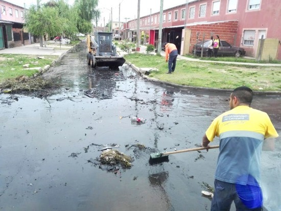 En el lugar se procedió a la recolección de residuos en la vía pública y a la desobstrucción de las bocas de tormenta.