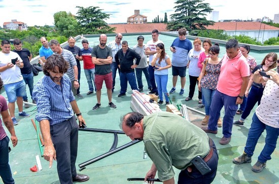 La capacitación se dividió en dos etapas: una teórica y otra práctica, en la cual los asistentes participaron de la instalación de un termotanque solar que será parte del flamante edificio municipal.