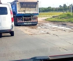"Ruta 6 mano a Zárate. Altura Villanueva, San Felipe. Imposible de cruzar, paso todos los días. Todo roto. Cada vez peor", escribe Marta.