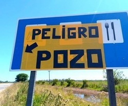 "Ruta 6 Aprox Km 180...mano a Ruta 8 en la curva de Santa Susana...una vecina cansada de pedir a funcionarios y concejales que hagan algo hace meses...y sintiendo impotencia de ver todos los días familias tiradas al costado de la ruta con sus autos rotos...hicimos algo para ayudar y tratar de evitar un mal mayor. Eso si...las fotomultas funcionan perfecto", escribe Analía.