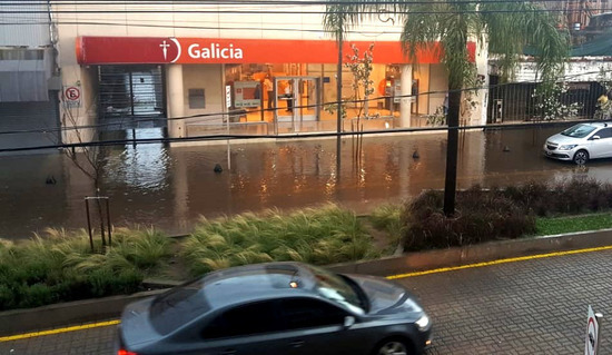 El fuerte temporal desatado esta mañana ocasionó algunos inconvenientes en el centro de la ciudad, generando acumulación de agua debido a la obstrucción en las conexiones de las cañerías que fluyen hacia el rio Paraná.