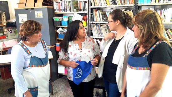 Mònica Navarro junto a Margara Pons y los directivos de la Escuela Nª7 donde asiste Juan Manuel.