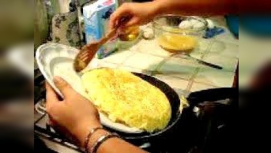 Para dar vuelta la tortilla, tapar la sartén con un plato y luego se gira el conjunto.