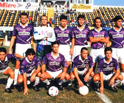 LA FORMACIÓN DE LA FINAL EN 1996, CON OTTA PARADO ENTRE PEREYRA Y FRATTINI. ESA TARDE, VILLA DALMINE GRITÓ CAMPEÓN AL VENCER 1-0 A ALEM EN CANCHA DE ALMIRANTE BROWN.