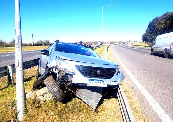 El auto impactó contra el guarda rail que divide ambas manos, se montó y en su trayectoria impactó de frente contra una columna de alumbrado, para luego girar y quedar mirando hacia Campana dentro del cantero central de la ruta.