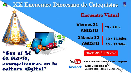 Este año, todos los catequistas de la diócesis de Zárate-Campana festejarán su día participando del XX Encuentro Diocesano de Catequistas - ENDICA bajo el lema "Con el Sí de María, evangelizamos en la cultura digital" en modalidad virtual.