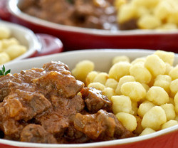 El Goulash es una receta muy conocida en Europa central, muy sabrosa. Los Spätzle son ñoquis y se pueden reemplazar por los tradicionales de harina… ya que hoy es 29, amerita.