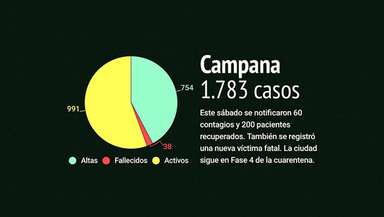 Es la 38ª víctima fatal en Campana. Ayer, además, se informaron 60 nuevos positivos y 200 altas médicas. De esta manera, la cifra de recuperados volvió a superar a la de casos activos luego de 17 días.