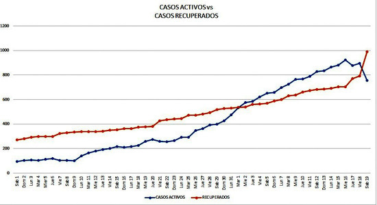 DESPUÉS DE 17 DÍAS, LOS CASOS RECUPERADOS VOLVIERON A SUPERAR A LOS ACTIVOS EN CAMPANA.