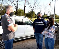 Sergio Fernández, dialogando con Carlos Ortega, Sec. Gral. del gremio de la ANSeS, y la diputada provincial Soledad Alonso, luego de la media sanción en reconocimiento a su trayectoria deportiva.
