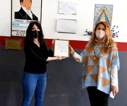 La Directora de la EP Nº2 "Manuel Belgrano" Sra Gabriela Oribones recibió de manos de la Diputada Soledad Alonso un reconocimiento a la institución educativa con motivo de sus 50º aniversario. El mismo fue tratado y aprobado por la Cámara de Diputados de la Provincia.