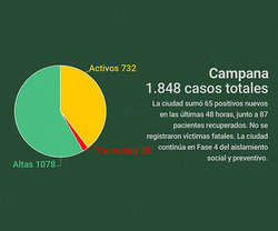 Esta situación se debe al avance de los recuperados: el sábado se habían confirmado 200 altas médicas y en las últimas 48 horas se sumaron otras 85. Así, ya son más de mil los casos recuperados en nuestra ciudad: 1.078 desde que comenzó la pandemia.