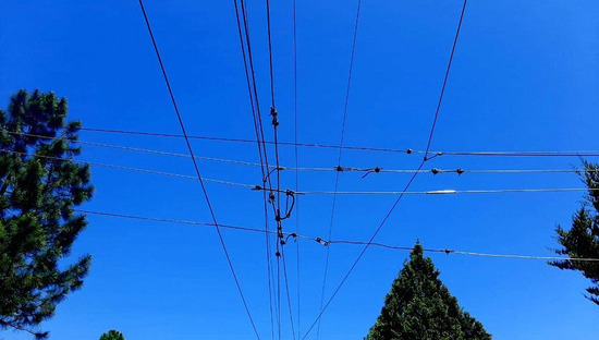 "Peligro eléctrico. Atahualpa Yupanqui y Figueroa Reyes (Barrio La Lucila) tendido eléctrico deplorable" muestra Dino.
