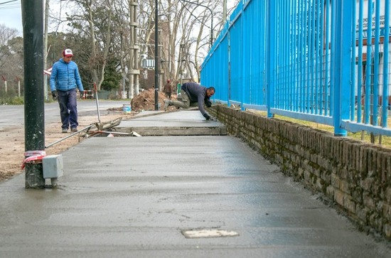 Ahora, con la colaboración de la empresa Tenaris Siderca, avanza con la construcción de la vereda de acceso lindero a la calle Comandante M. J.Escola.
