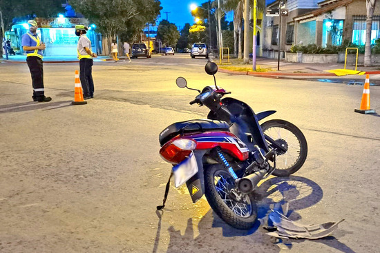 Una mujer de alrededor de 20 años, finalizó con un pie lesionado tras impactar ayer con su moto Honda a un Toyota Etios en el encuentro entre Paso y diagonal Sarmiento.