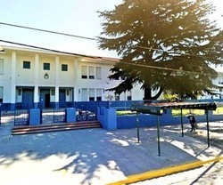 La camioneta estaba estacionada sobre la vereda de la escuela normal.