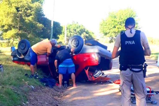 Sin mediar otro vehículo en el siniestro, ayer por la tarde volcó un Fiat Duna en el callejón Vicente De Marco, a la altura de la calle Negrete, entre el barrio Malvinas y Ruta 6.