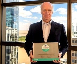 Paolo Rocca con el reconocimiento de la World Steel Association. Tenaris construirá un parque eólico para abastecer el 50% de la energía eléctrica que consume Siderca en Campana.