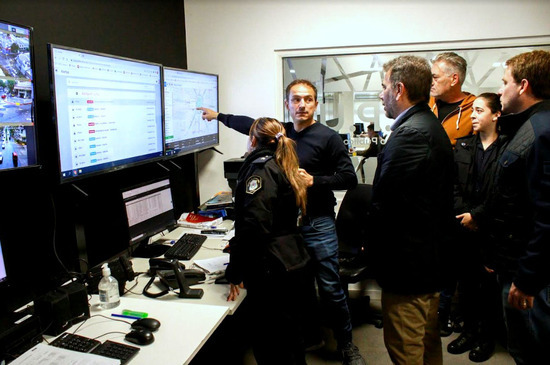 Las autoridades recorrieron las renovadas instalaciones del Centro Integral de Monitoreo Público (CIMoPu) junto al secretario de Seguridad, Abel Milano y la subsecretaria de Prevención y Relaciones con la Comunidad, Romina Buzzini.