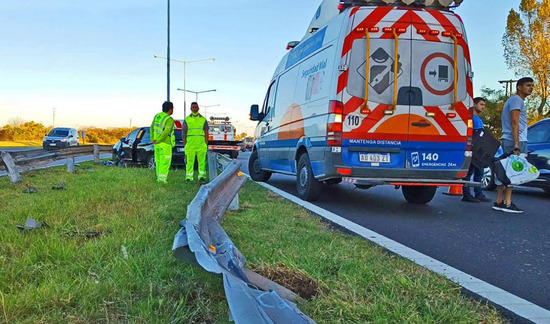 Aparentemente, el conductor perdió el control del auto impactando contra el guardarrail de la mano lenta, para luego cruzar la autopista, montarse y superar el guadarrail central, finalizando su trayectoria en el centro del cantero.