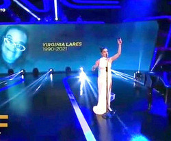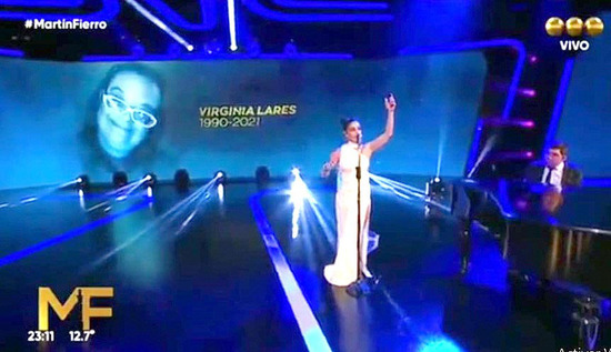 Mientras Soledad Pastorutti cantaba el tema "Brindis", la ceremonia de entrega de los Martín Fierro 2022 emitida por TELEFE, se proyectó un video de homenaje a los actores fallecidos durante la pandemia que incluyó a Virginia Lares (1990-2021).