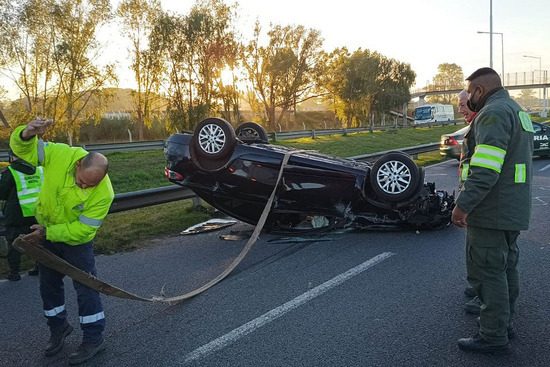 El automovilista de un Renault Fluence volcó por evitar al Volkswagen Gol y al equino.