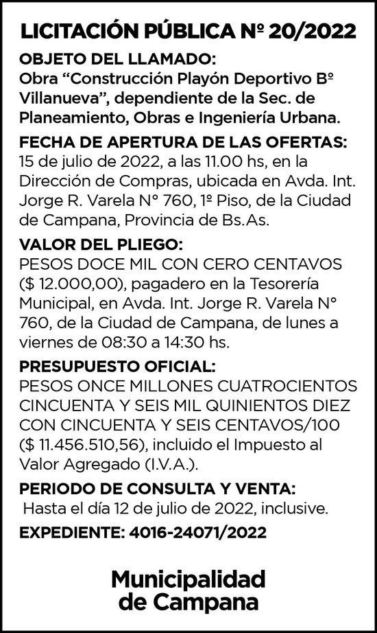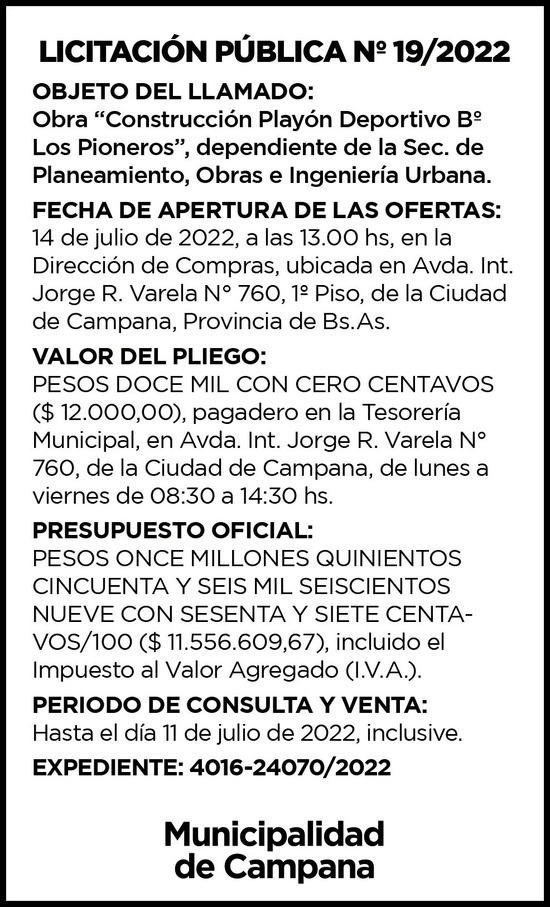 Av. Ing. Rocca 161 (2804) Campana - Provincia de Buenos Aires