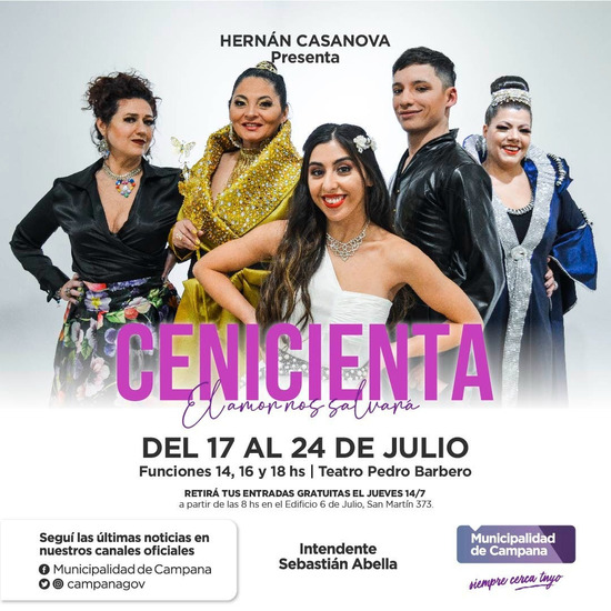 "Cenicienta, el amor nos salvará" es una obra musical protagonizada por el elenco de Hernán Casanova. Contará con 25 actores en escena que prometen desplegar sobre el escenario mucho color y alegría.