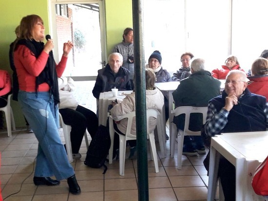 Una de las primeras actividades compartidas por los adultos mayores fue un karaoke con canciones y artistas de su época además de una clase de aquagym en la pileta del club.