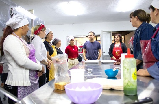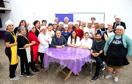 Invitado especialmente para conocer la "cocina" de la propuesta gratuita que impulsa la Secretaría de Inclusión, Educación y Cultura, el jefe comunal conversó con los alumnos y la profesora Marina Padovani y hasta tuvo el honor de degustar un menú preparado para la ocasión, que incluyó entrada, plato principal y postre.