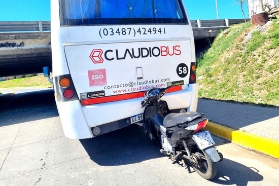 Una mujer, quien se trasladaba en moto detrás del vehículo, se vio sorprendida por la imprevista frenada en seco y terminó impactando con el minibús por su parte trasera. Un móvil del SAME la trasladó hasta el hospital municipal.