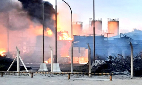 Pasado el mediodía, informaron que gran parte de la planta fue controlada pero que quedaba un fuego descontrolado en la zona de los tanques.